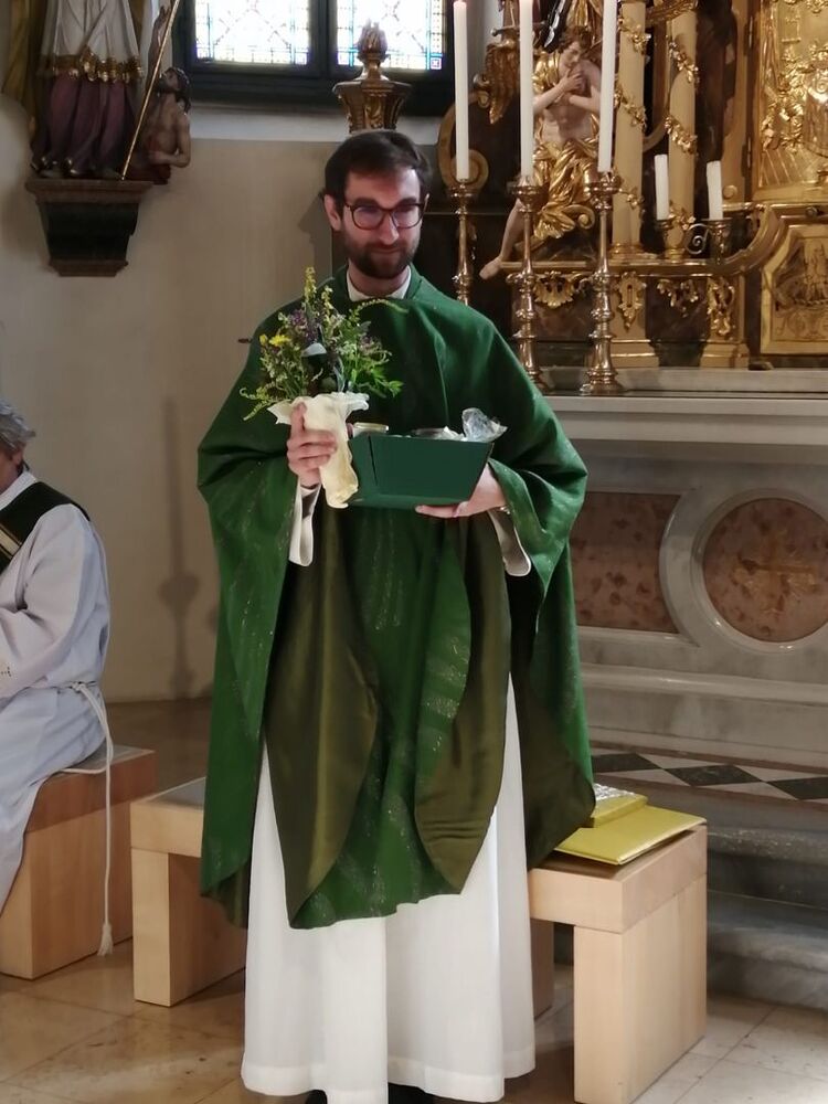 In diesem Sinne begann am Sonntag, dem 13. August, der Gottesdienst mit Mag. Markus Krill, der am 25. Juni 2023 im Grazer Dom zum Priester geweiht worden war und nun in unserer Pfarre eine Nachprimiz feierte.